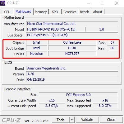 Anakart yonga seti de dahil olmak üzere sistem özelliklerini kontrol etmenin birçok yolu var, oldukça pratik bir yazılım olan CPU-Z de bunlardan biri. Bu bağlantıya tıklayarak CPU-Z’yi indirebilirsiniz. Mainboard sekmesine geldiğinizde yonga seti sürümünüzü ve kod adını görebilirsiniz: