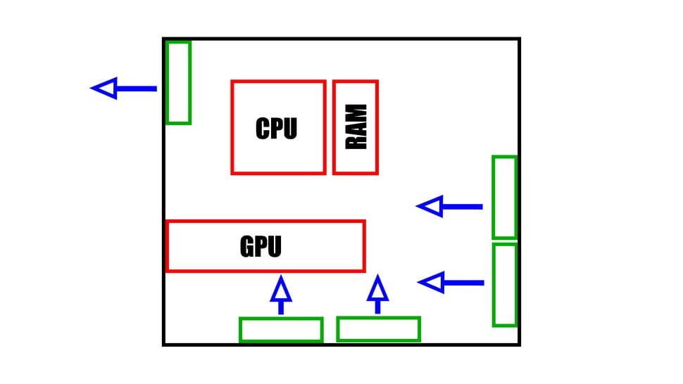 İdeal olarak kasanıza soğuk hava üflemek için iki giriş fanına ihtiyacınız var. Sıcak hava bileşenlerinizin etrafında dolaşarak sıcak havanın yükselmesini ve egzoz fan(lar)ı aracılığıyla kasadan çıkmasını sağlar.