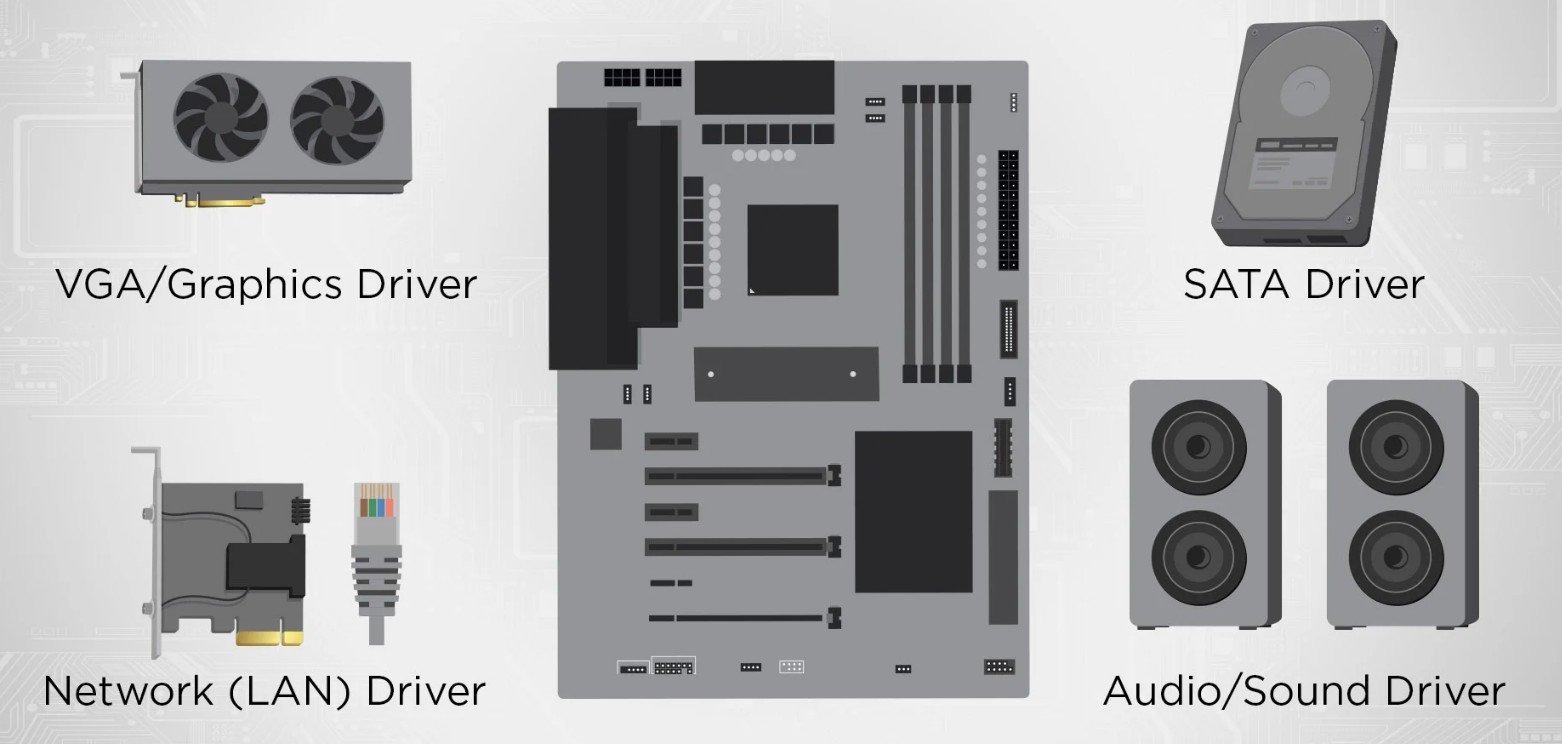 Sürücüler anakart ile işletim sistemi arasında bir arayüz görevi görür, yani bilgisayarınızın işlevlerini yerine getirmesi için olmazsa olmaz. Anakartın üzerinde çok farklı bileşenler bulunur ve bunlar farklı işlevsellikler sunar: Ağ sürücüleri, NVMe sürücüleri, ses sürücüleri, USB sürücüleri, yonga seti sürücüleri gibi.