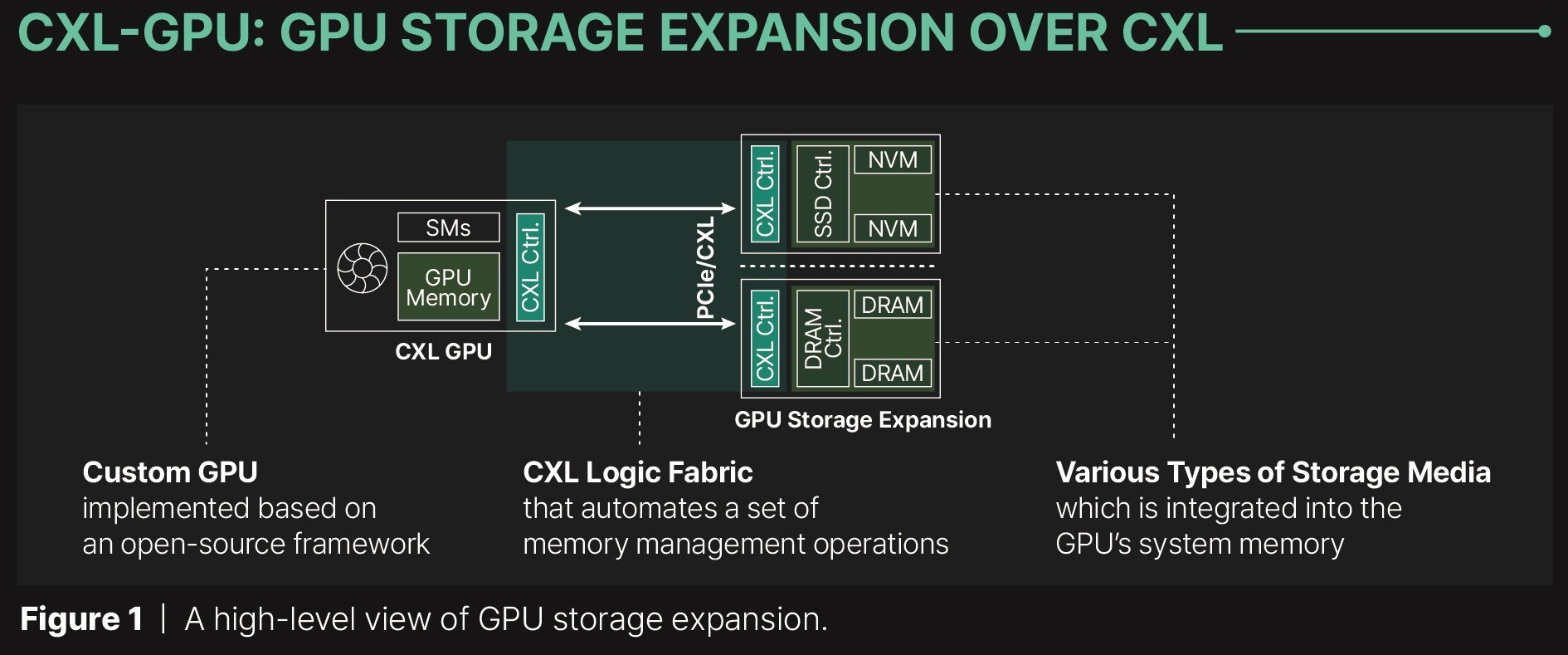 Sorunu çözmek isteyen şirket, PCIe üzerinden harici belleği destekleyen birden fazla kök bağlantı noktası (RP) ile donatılmış CXL 3.1 uyumlu bir kök kompleksi (RC) ve GPU’nun sistem veri yoluna bağlanan ana bilgisayar tarafından yönetilen aygıt belleği (HDM) kod çözücüsüne sahip bir ana bilgisayar köprüsü geliştirdi. Sistem belleğinin adres aralıklarını yönetmekten sorumlu olan HDM kod çözücü, esasen GPU’nun bellek alt sisteminin sistem belleğiyle iş yaptığını ‘algılamasını’ sağlıyor. Gerçekte ise alt sistem PCIe bağlantılı DRAM veya NAND kullanabiliyor, bu da GPU bellek havuzunu genişletmek için DDR5 bellek ya da SSD’lerin kullanılabileceği anlamına geliyor.