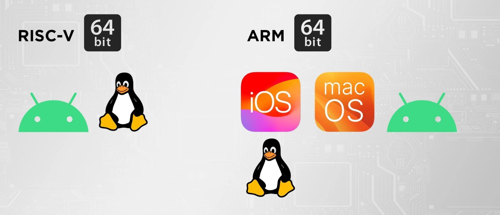 - Komut Seti: RISC-V, temel tamsayı komut seti ve kayan noktalı aritmetik, atomik işlemler, vektör işleme gibi özellikler için isteğe bağlı uzantılara sahip sabit bir komut seti mimarisine sahip. ARM ise ARMv7, ARMv8 ve SIMD (Tek Komut, Çoklu Veri) işlemleri için NEON gibi çeşitli uzantılar dahil olmak üzere birden fazla komut setine sahip.