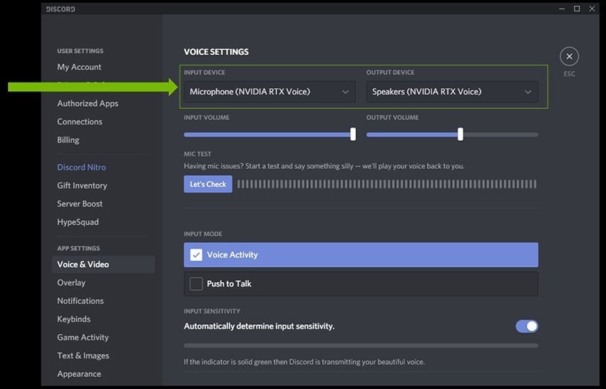 Örneğin Discord üzerinden Ayarlar’a giriş yaptıktan sonra Ses ve Görüntü sekmesine giriş yapalım. Sonrasında ise giriş ve çıkış aygıtını NVIDIA RTX Voice olarak ayarlayın.
