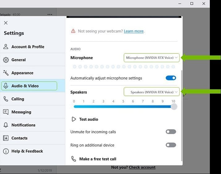 - Daha sonra yazılımdan kullanmak istediğiniz hoparlör ve mikrofonu seçin