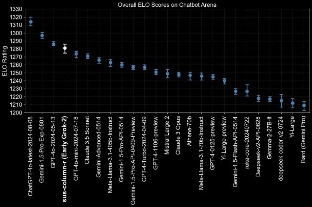 LMSYS’ye göre Grok 2, matematik ve kodlamada 2. en iyi, zor komutlara yanıt verme becerisinde ise 3. en iyi olarak derecelendirildi. Bu da genel liderlik tablosunda üçüncü sıraya yerleşmesini sağladı. Grok 2’nin önünde ChatGPT 4.0 ve Gemini 1.5 Pro yer alıyor.