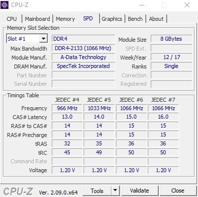 Bu sekmede ise sistemimizde takılı olan belleklerin tüm ince ayrıntılarını bulabilirsiniz. Eğer sisteminizde birden fazla RAM takılıysa, sol üst taraftaki “Memory Slot Selection” kısmından “Slot #” numarası seçebilirsiniz. Böylelikle belleklerin özelliklerini ayrı ayrı görebilirsiniz.