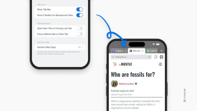 iOS’ta güncelleme, Sekme Çubuğu’ndan arka plan sekmelerini kapatma, Adres Alanı’nın daha ince denetimi ve Destekçi Rozetleri getiriyor. Android sürümü de Destekçi Rozetleri alıyor ve tamamen yenilenmiş Ayarlar’ı sunuyor. Ek olarak, artık Ayarlar’da arka plan sekmelerinde kapatma düğmesini göstermek için bir seçenek belirleyebiliyorsunuz.