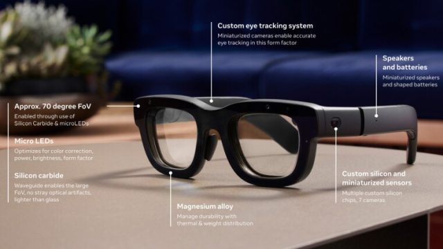 98 gram ağırlığındaki Orion gözlükleri, bugüne kadar bir araya getirilmiş en gelişmiş AR ekranına sahip ve bugüne kadarki en küçük AR gözlük form faktöründe en büyük olan yaklaşık 70 derecelik görüş alanı sunuyor. Lensler cam yerine silikon karbürden yapılmış durumda. Bu da lensleri inanılmaz derecede hafif hale getiriyor. Meta ayrıca süper küçük ve son derece güç tasarruflu uLED projektörler kullanıyor.