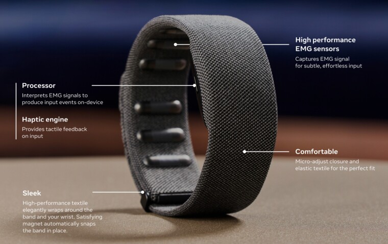 Meta, hafif dayanıklılık için magnezyumdan yapılmış Orion’un çerçeve çerçevelerine yedi küçük kamera ve sensör yerleştirdi. Orion, giriş kontrolü için ses ve göz bakışını desteklerken Meta el takibi ve EMG bilekliğiyle tamamen yeni bir yol geliştirdi. Bu, kolunuzu rahatça yanınızda tutarken kaydırmanıza, tıklamanıza ve kaydırmanıza olanak tanıyor.