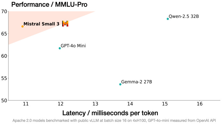 ChatGPT’de en yaygın kullanılan model, kullanıcıların GPT-4o istekleri tükendiğinde geri dönüş modeli olan GPT-4o mini. Mistral Small 3, bu OpenAI modelinden daha iyi performansa sahip ve ayrıca daha düşük gecikme yaşadığı söyleniyor.