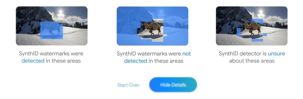 SynthID Detector, farklı biçimlerde yapay zeka ile oluşturulan içeriği tespit edebiliyorr ve içeriğin hangi bölümlerinin SynthID kullanılarak filigran eklenmiş olma olasılığının en yüksek olduğunu vurgulayabiliyor. Google, yapay zeka filigran ekleme aracını 2023 yılında tanıttı ve daha sonra yapay zeka tarafından oluşturulan metin ve videoyu destekleyecek şekilde güncelledi. Filigran ekleme tekniği ise bu yılın başlarında Google Fotoğraflar’daki Magic Editor aracına eklendi.