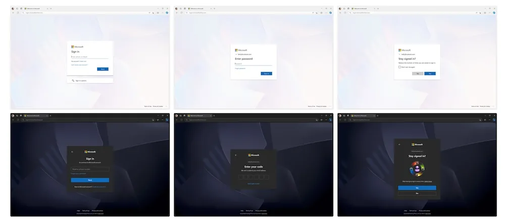 Ağustos 2025’ten itibaren, kişisel Microsoft hesapları kimlik doğrulama sayfasında yeni bir arka plan görüntüsü görmeye başlayacak. Açık degradeli arka plan, bu makalenin başlık görselinde de görülebileceği gibi buzlu cam görünümlü başka bir arka planla değiştirilecek. Microsoft, bu görselin Akıcı Tasarım estetiğini takip ettiğini ve daha temiz, dikkat dağıtıcı unsurlardan uzak ve tutarlı bir deneyim sunarken aynı zamanda kullanıcı deneyimini de modernleştirdiğini vurguluyor.