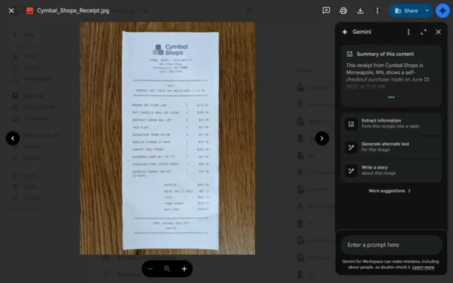 Google Drive’daki Gemini yan paneli artık görsellerden veri analizi yapabiliyor
