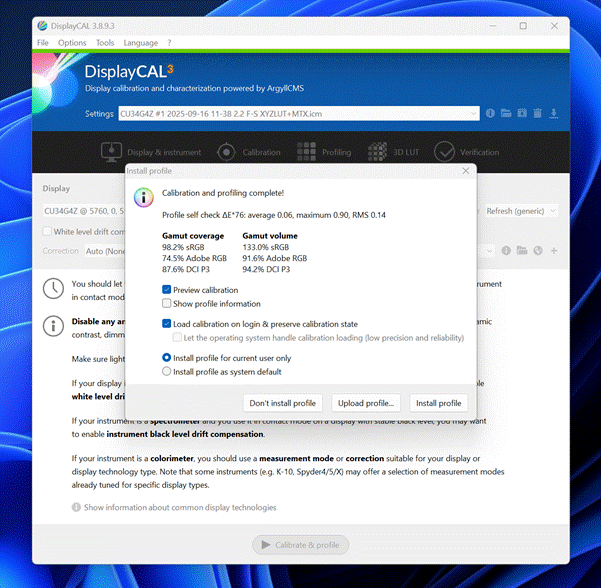 WLED arka aydınlatma sistemi sayesinde renkler daha doğru gösteriliyor. 1.07 milyar renk desteği ve %94 DCI-P3 renk gamı kapsaması, VA panelden beklenenin üzerinde bir renk performansı sunuyor. Testlerimizde renk kalibrasyonuna baktığımızda %98.2 sRGB, %74.5 Adobe RGB ve %87.6 DCI-P3 kapsama oranları gördük.
