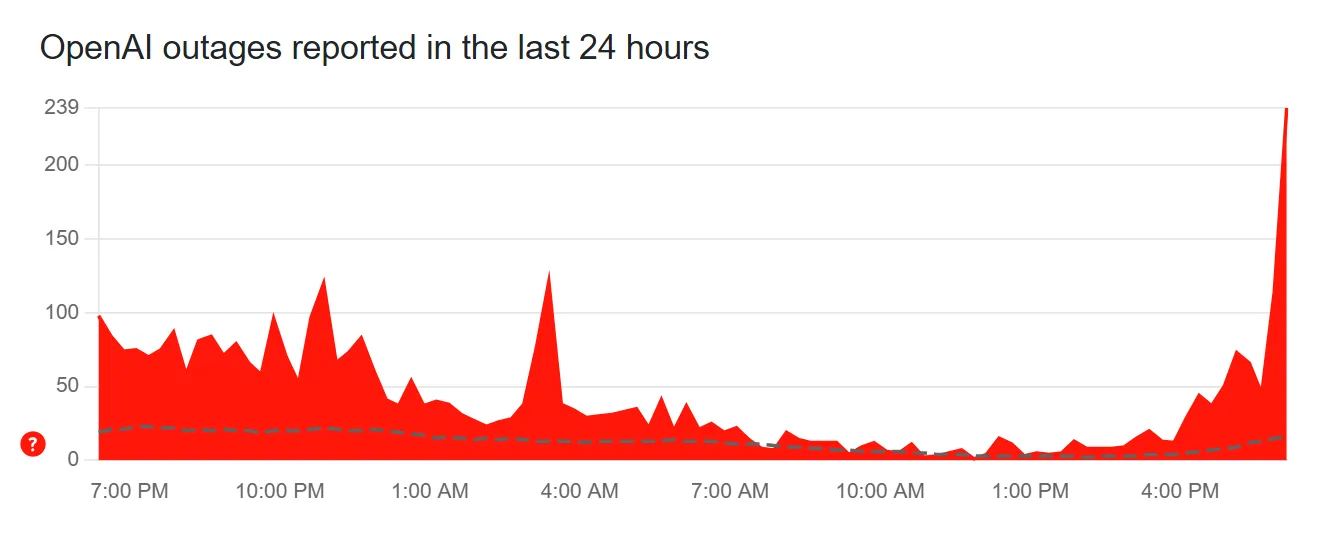 ChatGPT’ye erişimde dünya genelinde sorunlar yaşanıyor. Türkiye’deki birçok kullanıcı da dahil olmak üzere, platforma giriş yapmaya çalışanlar hata mesajlarıyla karşılaşıyor. Kesintilerin küresel boyutta olduğu, anlık çökme ve sorun bildirimlerini takip eden Downdetector verilerine de yansıdı.