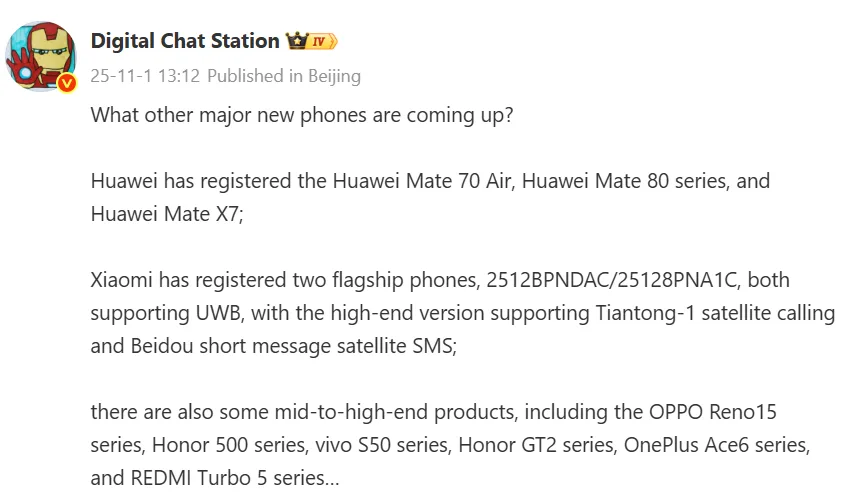Telefonların her ikisi de Ultra Geniş Bant (UWB) desteğiyle geliyor. Üst seviye versiyon ise Tiantong uydu aramaları ve Beidou kısa mesaj iletişimi özelliklerine sahip olacak. Bu özellikler kullanıcıların karasal ağların bulunmadığı uzak bölgelerde bile bağlantıda kalmasına imkan sağlayacak.