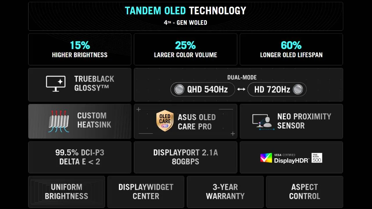Yeni modelin en dikkat çeken yönü çift modlu çözünürlük ve yenileme hızı seçenekleri. 2560×1440 çözünürlükte 540 Hz, 1920×1080 çözünürlükte ise 720 Hz yenileme hızı sunuluyor. Bu değerler, rekabetçi oyuncular için şu ana kadar bir OLED ekranda ulaşılan en yüksek seviyeler arasında yer alıyor.