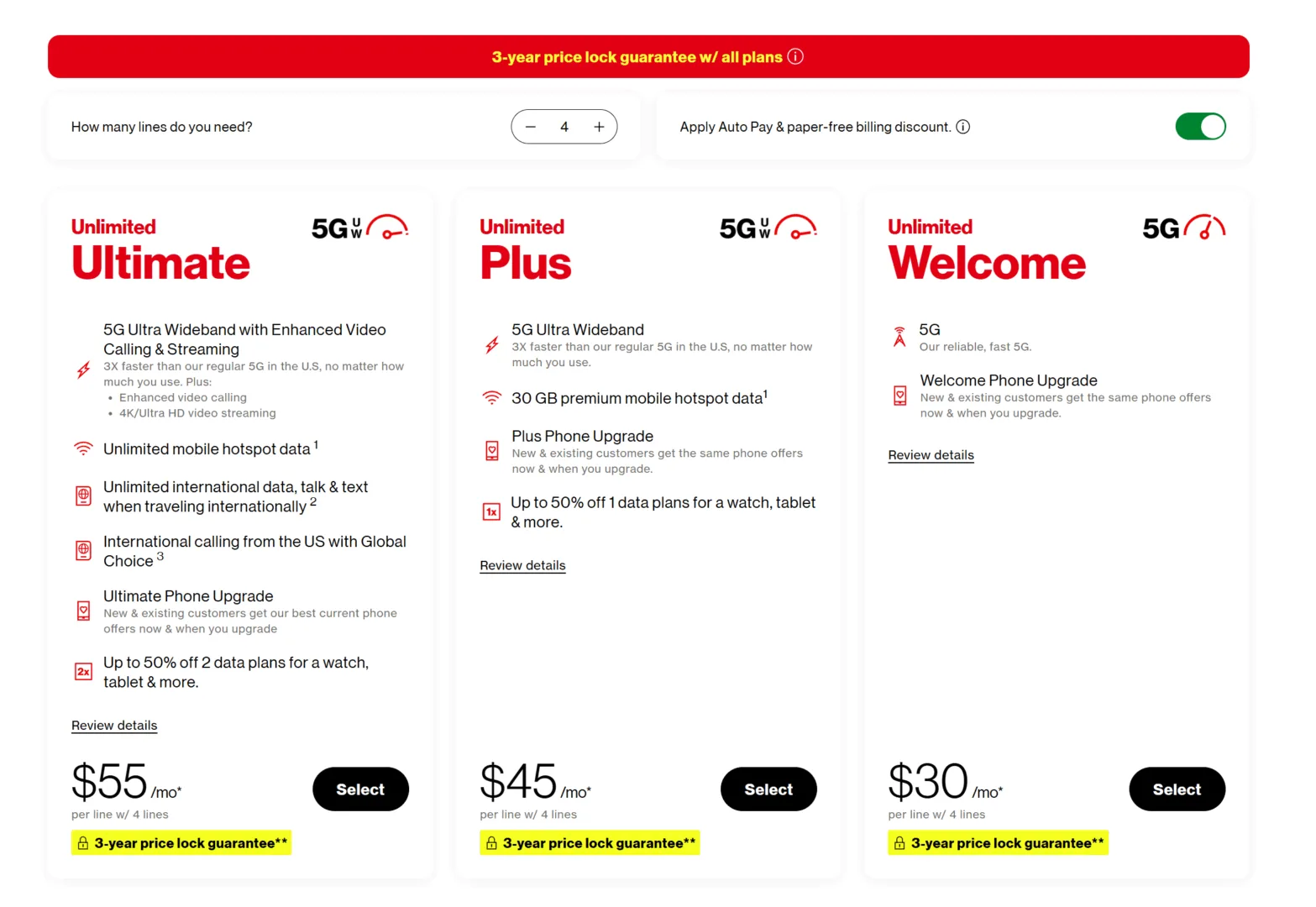 Verizon’un kampanyası yalnızca belirli tarifelerle sınırlı. Unlimited Ultimate veya Unlimited Plus gibi 5G’de yüksek veri limitine sahip veya tamamen limitsiz olan ve fiyatı 45-50 dolar seviyesinde olan planlar seçildiğinde kullanıcılar bu cihaz indirimlerinden yararlanabiliyor. Ayrıca kampanyadan yararlanan yeni müşterilere 200 dolarlık dijital hediye kartı da veriliyor.