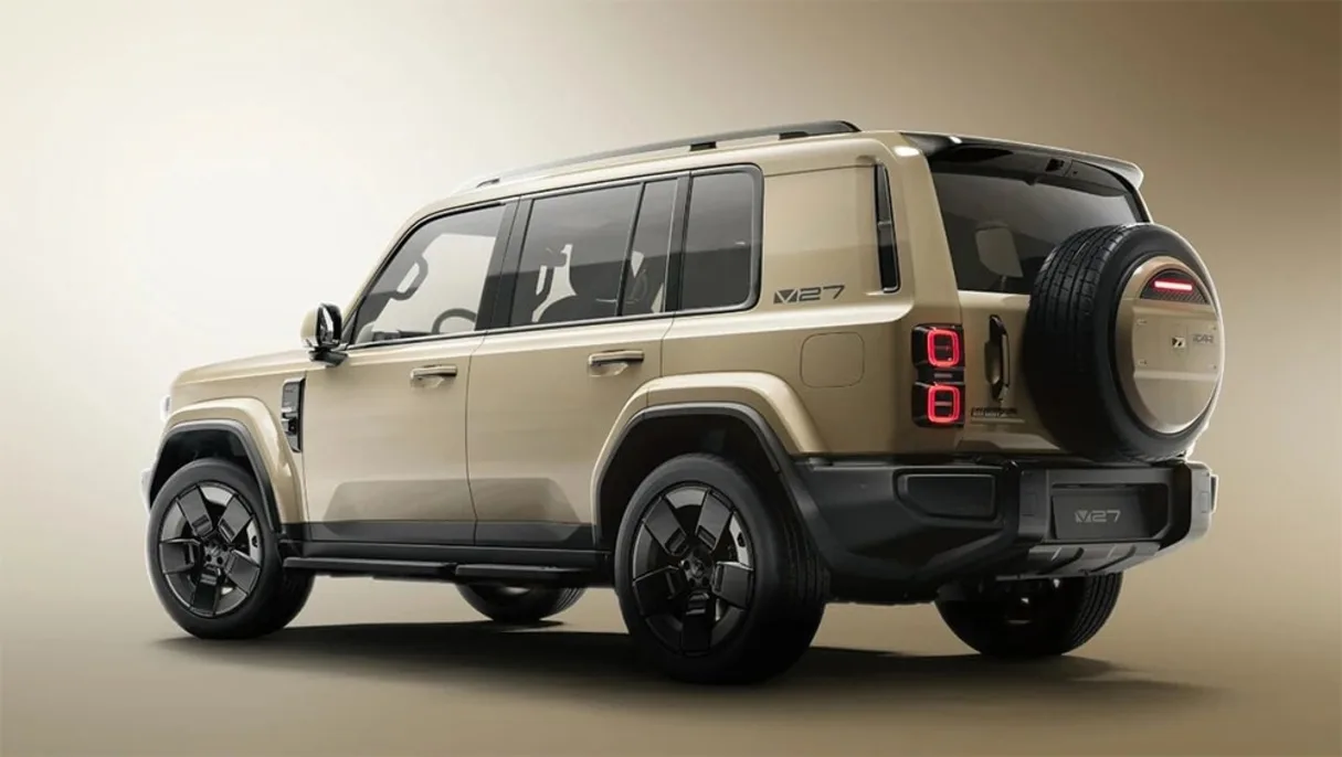 iCar V27, iCar markasının şimdiye kadarki en büyük modeli olarak tanımlanıyor. Tasarımında klasik arazi araçlarını hatırlatan kutu formlu gövde ile modern detaylar bir arada kullanılıyor. Köşeli hatlar, iri tamponlar, belirgin çamurluk çıkıntıları ve bagaj kapağına entegre yedek lastik taşıyıcısı, modele güçlü bir arazi karakteri kazandırıyor.