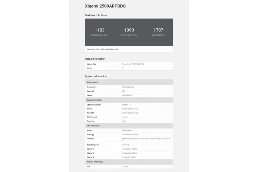POCO Pad M1 Geekbench AI veri tabanında göründü