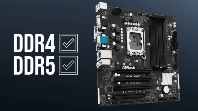 ASRock H610M COMBO Intel’in 12., 13. ve 14. nesil Core işlemcilerini destekleyen LGA1700 soketli bir micro-ATX anakart olarak duyuruldu. Bu modelin en dikkat çekici tarafı iki farklı bellek standardını aynı gövdede sunması. Anakart üzerinde 2 adet DDR4 ve 4 adet DDR5 DIMM yuvası bulunuyor. Bu yuvalar aynı anda kullanılamıyor. Ancak kullanıcılar sistemlerini kurarken ihtiyaçlarına göre DDR4 ya da DDR5 tercih edebiliyor.