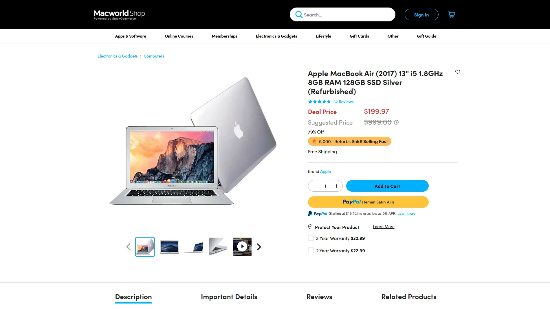 Normalde 999 dolar seviyesinde (çıkış fiyatı) satılan 13 inç MacBook Air yenilenmiş ürün kategorisinde 199,97 dolarlık fiyatla listelendi. Temel ihtiyaçlar için hafif bir dizüstü arayan kullanıcıların ilgisini çeken model düşük fiyatıyla dikkat çekiyor. Cihazın teknik özellikleri ve paket içeriği de satış detaylarında yer aldı.