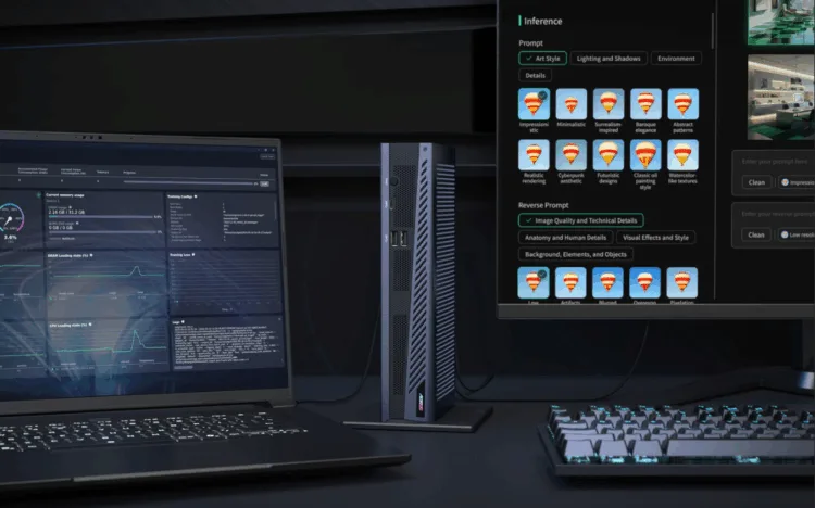 Bir grafik hızlandırıcı olmanın ötesinde premium bir I/O genişleme merkezi işlevi de gören AI BOX, kullanıcıların bağlantı ihtiyaçlarına tek kablo üzerinden çözüm üretiyor. Ünite üzerinde stabil ağ bağlantısı için Ethernet portu, dört adede kadar harici ekran desteği sunan HDMI ve DisplayPort çıkışları ile çok sayıda USB-A ve USB-C bağlantı noktası yer alıyor.