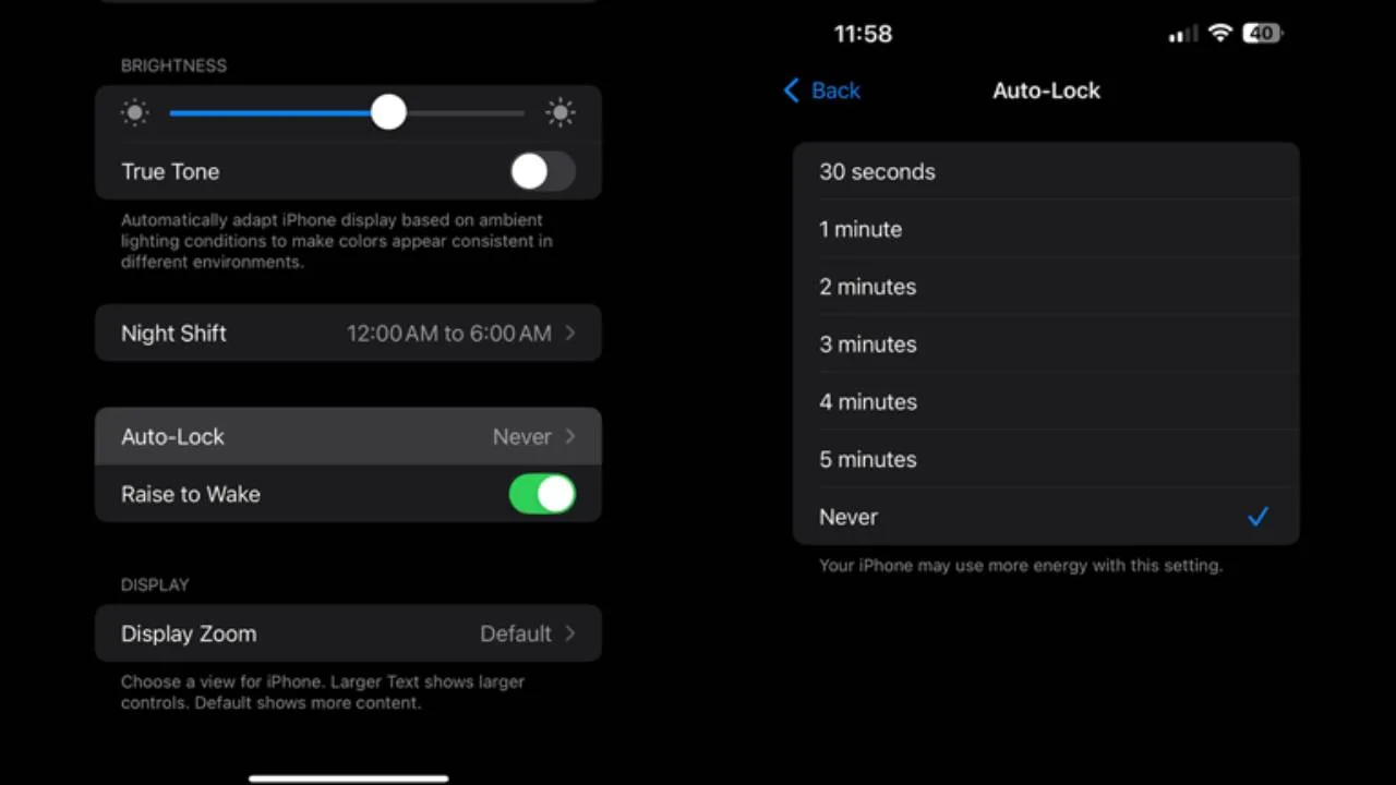 Yemek yaparken tarife bakıldığı veya uzun süreli bir aktivite sırasında not alındığı anlarda ekranın kararması sık yaşanan bir sorun. Ekranın sürekli kapanmasını engellemek ve iş akışını bölmemek için Ayarlar > Ekran ve Parlaklık > Otomatik Kilit menüsüne gidin. Burada ekranın kapanma süresi 30 saniye ile beş dakika arasında ayarlanabiliyor. Eğer telefonun sadece kullanıcı tarafından manuel olarak kilitlenmesi isteniyorsa bu menüden Asla seçeneği işaretleniyor.