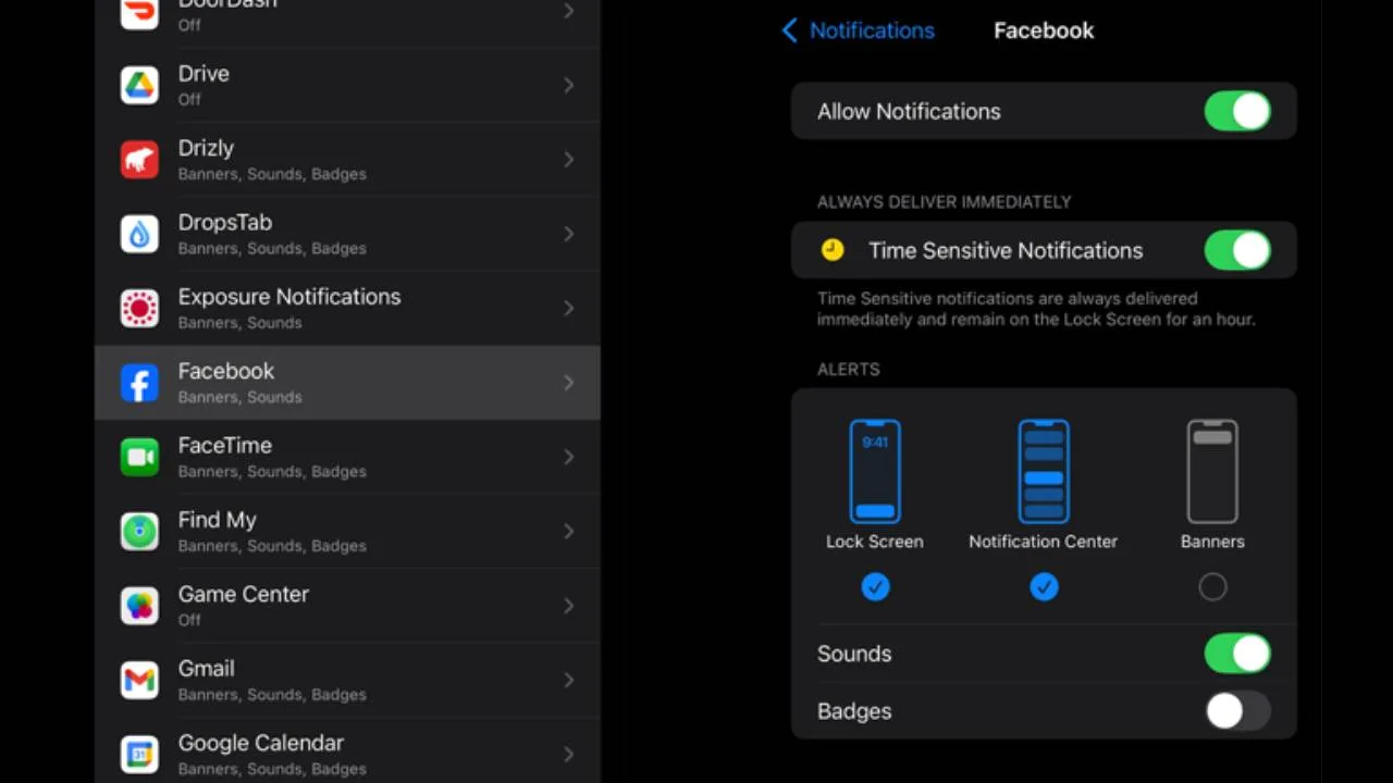 Bu seçeneklerin altında Başlık Stili, Sesler ve Rozetler ayarları yer alıyor. Bir uygulamanın günü bölmesi için geçerli bir nedeni yoksa, başlık bildirimlerini ve rozetleri kapatmak veya en üstteki Bildirimlere İzin Ver seçeneğini tamamen devre dışı bırakmak mantıklı bir çözüm oluyor. Hangi bildirimlerin açık kalacağına karar verirken aciliyet durumu göz önüne alınıyor. İş mailleri, uçuş bilgileri veya yemek siparişi gibi anlık takip gerektiren durumlar dışındaki bildirimlerin kapatılması öneriliyor.