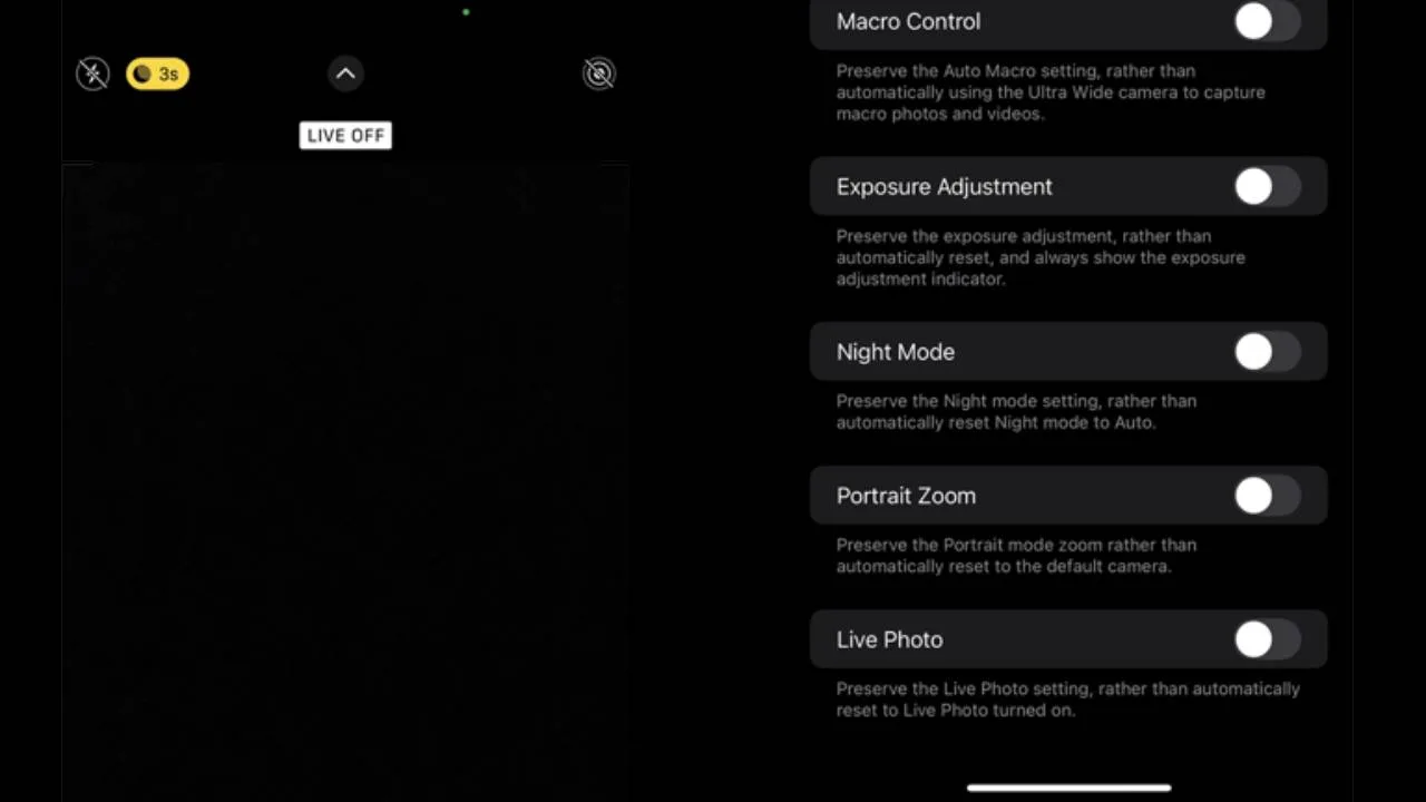 Bunu düzeltmek için Kamera uygulaması açılıp sağ üst köşedeki Canlı Fotoğraf simgesine dokunularak özellik kapatılıyor. Ancak bu ayarın kalıcı olması ve her seferinde tekrar açılmaması için Ayarlar > Kamera > Ayarları Koru menüsüne gidilip Canlı Fotoğraf seçeneğinin yanındaki düğmenin etkinleştirilmesi gerekiyor. Böylece özellik bir sonraki kamera açılışında tekrar otomatik olarak devreye girmiyor ve kapalı kalıyor.