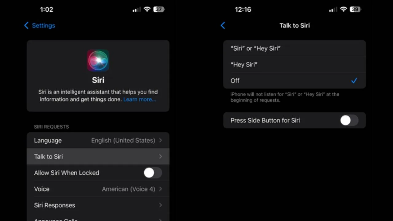 Siri’yi kapatmak için Ayarlar > Siri ve Arama menüsüne gidilip Siri ile konuşma seçenekleri kapatılıyor. Ayrıca telefon kilitliyken Siri’nin çalışması engellenebiliyor veya yan düğme ile aktivasyon seçeneği aynı menüden devre dışı bırakılabiliyor.
