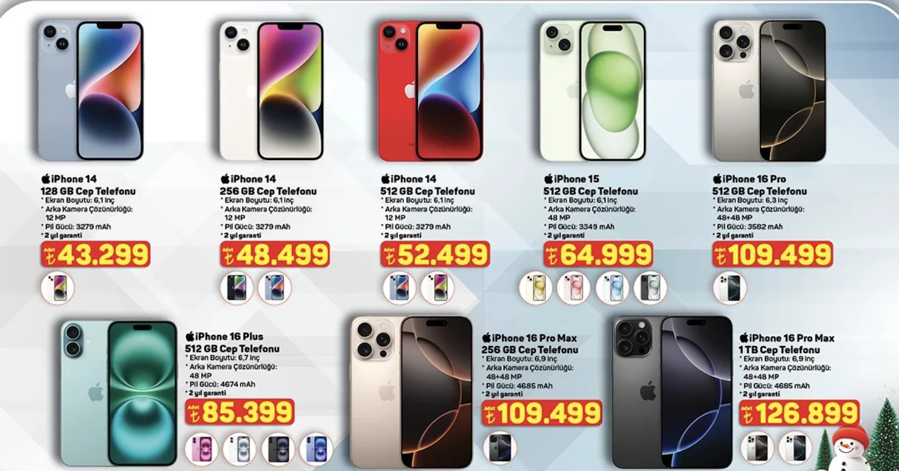 Sadece bunlarla sınırlı değil. 512 GB depolamalı iPhone 16 Plus modeli 85.399 TL fiyat etiketi taşıyor. Bununla birlikte 512 GB depolama sunan iPhone 15 ise 64.999 TL fiyat etiketiyle kullanıcıların karşısına çıkıyor. Aynı zamanda iPhone 14 ve iPhone 16 Pro gibi Apple ürünleri de satılıyor.