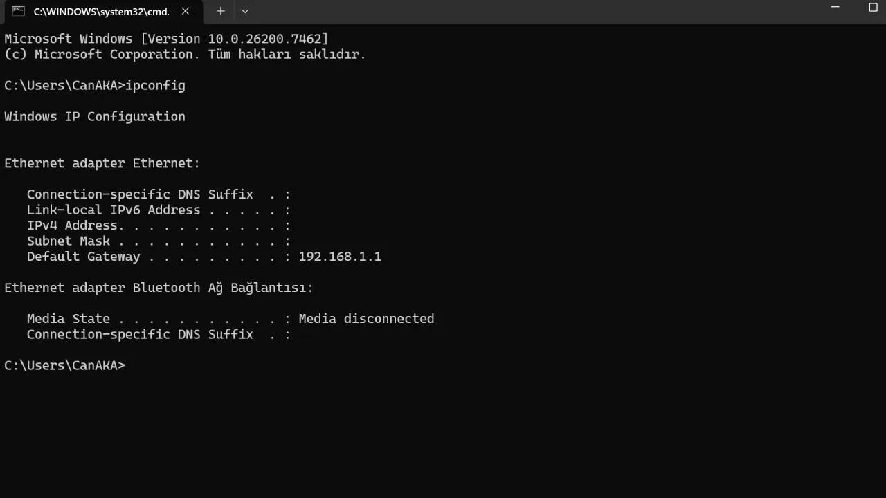 3- “Varsayılan Ağ Geçidi” satırındaki IP’yi kopyala.