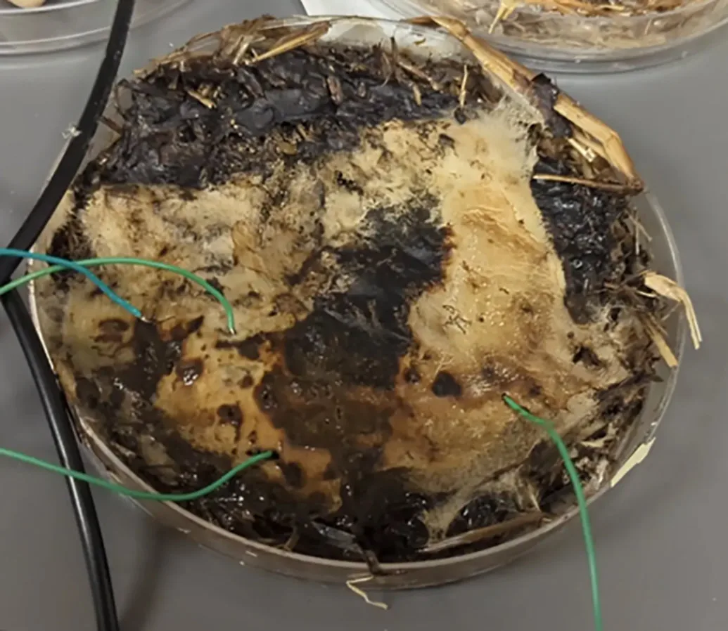 Elektriksel testlerden önce miselyumun iletkenliğini geri kazandırmak amacıyla yaklaşık 10 santimetre mesafeden iyonize su sisi uygulandı. Ardından örneklere elektrotlar bağlandı ve farklı voltajlar ile dalga formları gönderildi. Ölçümler bir osiloskop yardımıyla yapıldı. Araştırmacılar uygulanan elektrik sinyallerinin ardından miselyumun direnç değerinin değiştiğini ve bu değişimin belirli bir süre boyunca korunduğunu gözlemledi.