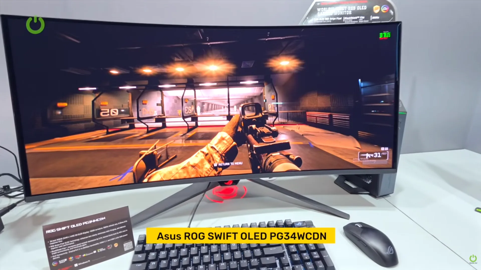 Monitör tarafında ROG Swift OLED ailesi geniş bir şekilde sergilendi. ROG Swift OLED PG34WDN, 34 inç WQHD çözünürlükte 360 Hz yenileme hızına sahip paneliyle Asus’un RGB Stripe Pixel OLED teknolojisini temsil ediyor.