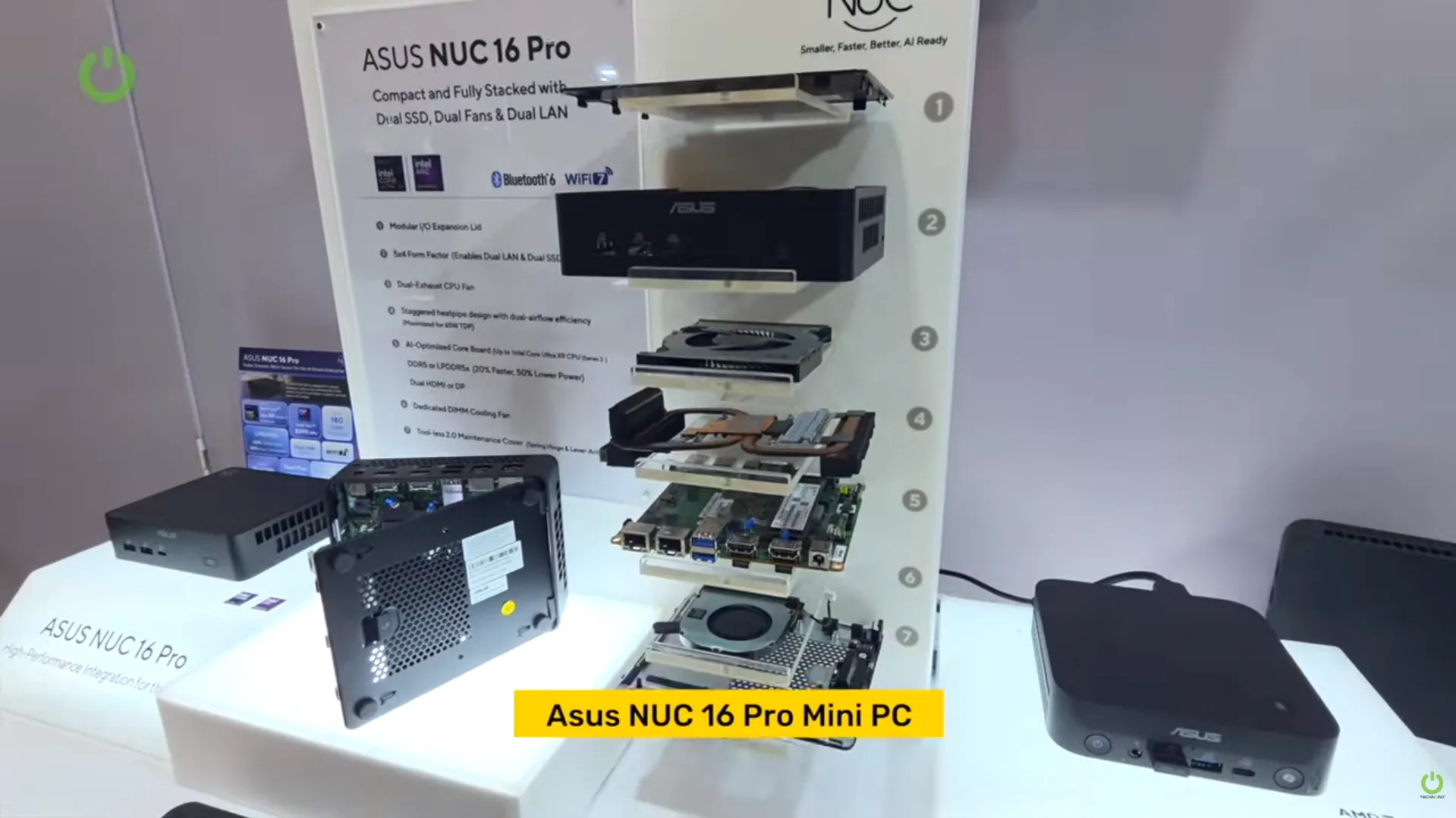 Mini PC tarafında NUC 16 Pro, ultra kompakt formda yüksek işlem gücü sunan bir çözüm olarak sergilendi. Alan tasarrufu gerektiren çalışma ortamlarında masaüstü performansını sade bir formda sunan bu model, profesyonel ve teknik kullanım senaryolarına odaklanıyor.