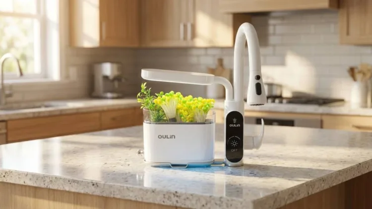 Oulin’in geliştirdiği akıllı bahçe sistemi, doğrudan mutfak musluğunun bulunduğu alana monte ediliyor ve mutfakta ek bir alan gerektirmeden çalışıyor. Eller yıkanırken ya da bulaşık yıkanırken musluğun yanında konumlanan bu küçük bahçede bitkiler yetiştirilebiliyor.