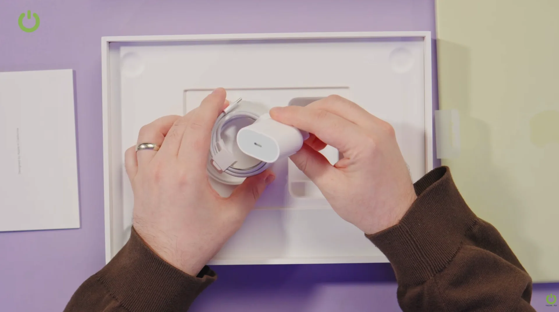 Kutudan USB Type-C kablo ve şarj adaptörü çıkıyor. İncelediğimiz model sarı renkli. Gövdede yekpare alüminyum yapı kullanılıyor. Kasanın alt bölümünde Torx vidalar yer alıyor. Kapak tek elle açılabiliyor.
