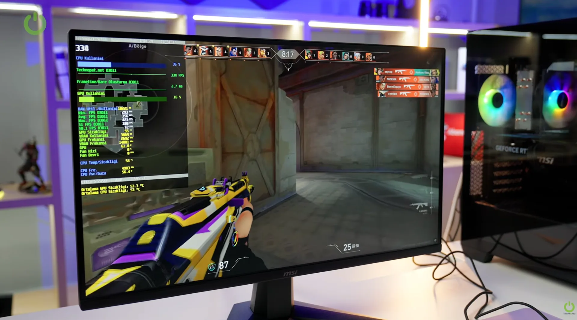 Oyun testlerinde Counter-Strike 2, düşük ayarlarda ve FidelityFX kapalı senaryoda ortalama 437 FPS verdi. Bu testte ekran kartı 68 derece, işlemci 59 derece ölçüldü. Valorant’ta düşük ayarlarda minimum 275 FPS, ortalama 367 FPS ve maksimum 475 FPS değerleri elde edildi. Yüzde 1 low sonucu 189 FPS, yüzde 0.1 low sonucu ise 71 FPS oldu. Bu testte GPU 49 derece, CPU 57 derece seviyesinde kaldı.
