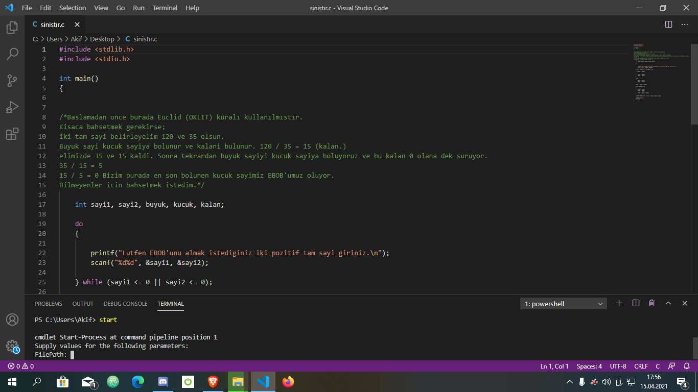 printf("Lutfen EBOB'unu almak istediginiz iki pozitif tam sayi giriniz.\n");