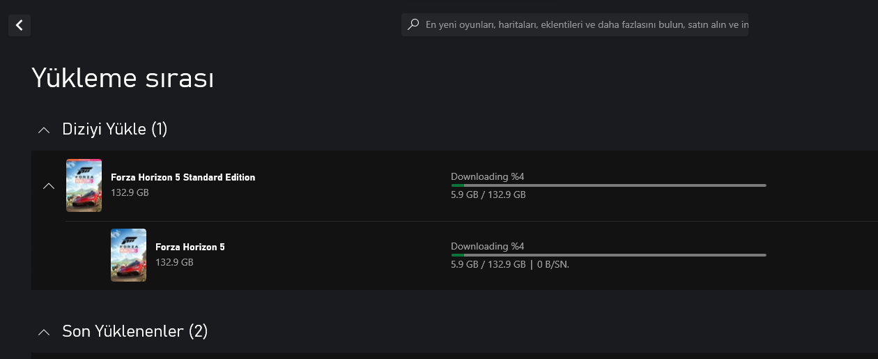 Bugün Xbox uygulaması üzerinden Forza Horizon 5 indirmek istedim indirme başladı lakin bir süre sonra indirme hızı 0 Bayt oldu ve öyle kaldı bunu nasıl düzeltebilirim?