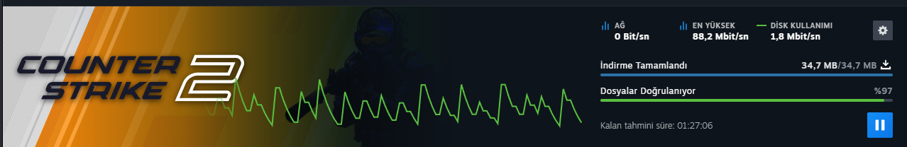 Onu da denedim fakat etki etmedi.İndirme önbelleğini de sıfırlayın Steam kapatıp tekrar başlatın.