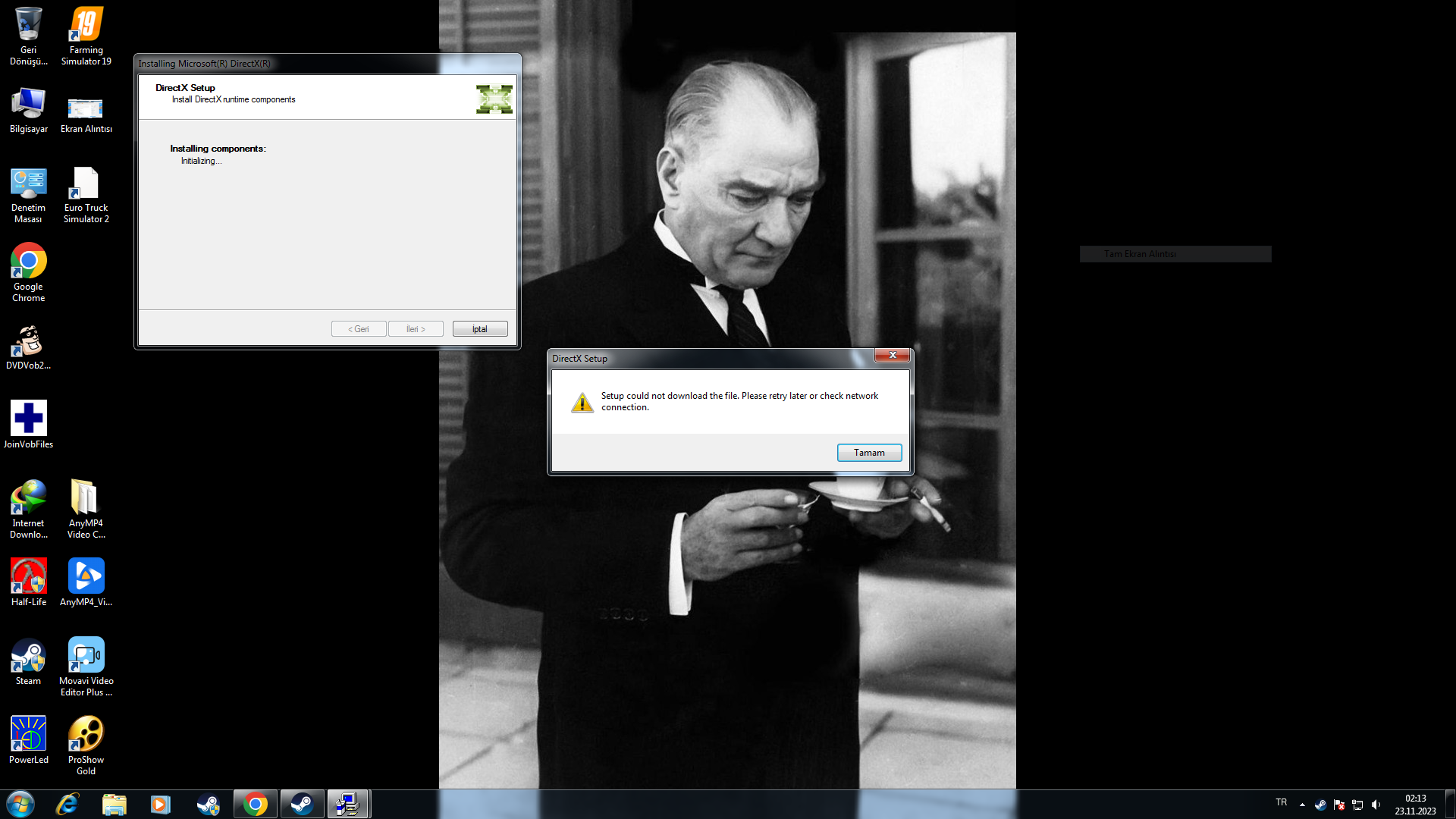 Merhaba arkadaşlar. Recep Baltaş'ın 0xc000007b çözüm videosunu izledim DirectX kurulumu yapılıyor ama ben kurmaya çalıştığımda fotoğraftaki hatayı veriyor çözümü nedir ağ bağlantınızı kontrol edin diyor ama internetimde de herhangi bir sorun yok.