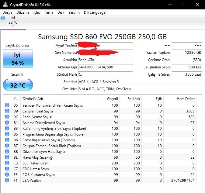 Hocam size de sormak isterim bu CrystalDiskInfo tam sağlık durumu hakkında net bir bilgi verebilir mi?