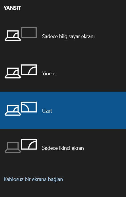 Mümkün. Win + P ile dinamik olarak aralarında geçiş yapabilir. İsterseniz 2 ekrana aynı görüntüyü aynalayabilir veya 2 iki ekranı birleştirip tek ekran gibi kullanabilirsiniz.