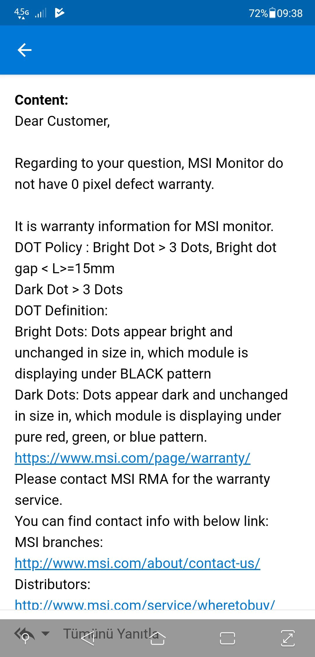 Kanunen bir ölü piksel dahi ayıplı ürün sayılıyor fakat teknik servisler genelde bir ölü piksel için iade/değişim kararı vermiyorlar. Yine de servisi arayıp bilgi almanızı öneririm.