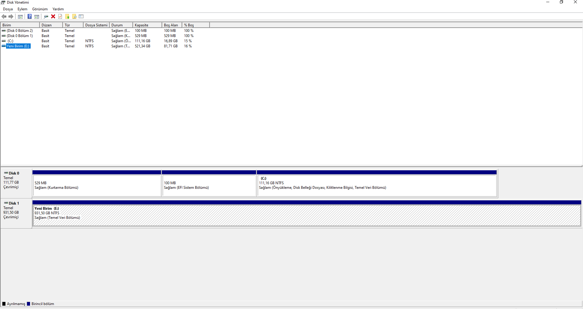 Hayır noramlde 1tb diskimi kullanabiliyordum fakat birimi küçült işlemi yaptım fakat anlamsızca durum bu hale geldi