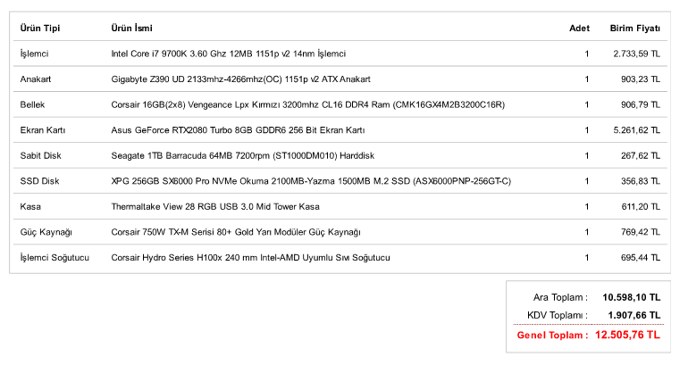 Şu sistemi öneririm. Tam bütçenize yetti fakat size tavsiyem i9 9900k kullanmak yerine benchmarklarda ona yakın olan yakın olan i7 9700k'yı tercih etmenizdir.