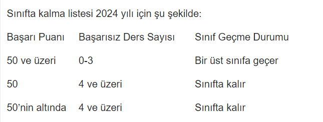 7 dersten kalırsak sınıf tekrarı diyorlar doğru mu?