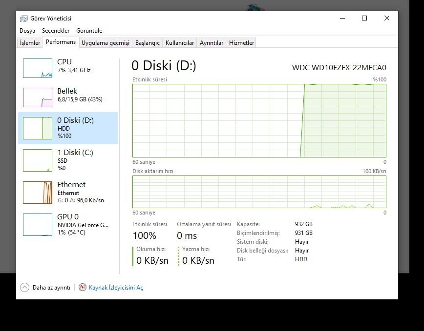 Bilgisayarımda 1 aydır bu şekilde HDD kullanımı %100 oluyor. Defender tarzı şeyler bile kapalı. Örneğin Görev Yöneticisi'ni açmaya basıyorum bu böyle olduğu an uzun süre açılmasını bekliyorum ve HDD %100 olduğunda yeniden başlatma yaparsam 3-4 dakikaya anca yeniden başlatıyor.