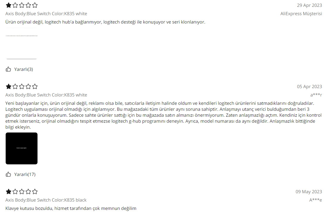 Çok saçma bir yorum yaptınız. Orijinal klavye. Kendim de kullanıyorum. Klavyemde benlik bir problem oldu ve Logitech ile konuştum. Seri numarasını alıp bana yeni bir Logitech K835 yolladılar. Bakın Logitech yolladı AliExpress vs değil. Aynı klavye :)